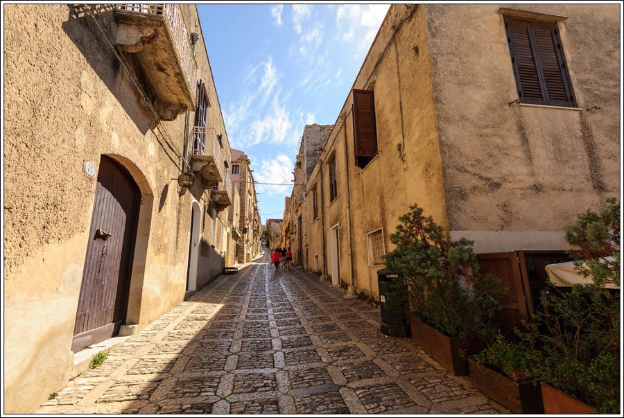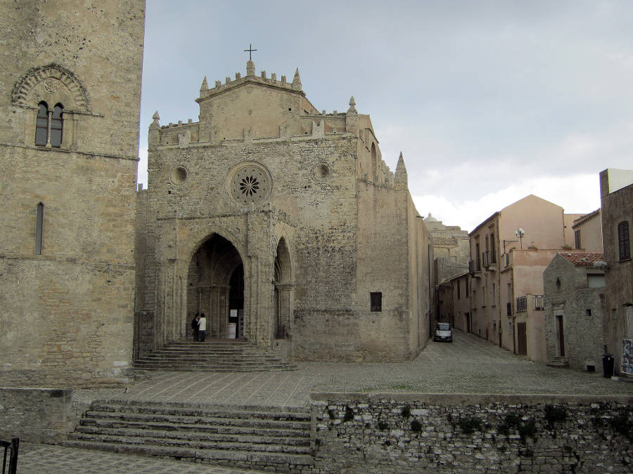 Erice si poco lontano da Trapani, sulla vetta di un monte isolato, a 751 m d'altezza poggia, naturalmente protetto, solenne e solitario, un piccolo e prezioso gioiello della nostra provincia. Fatta di stradine strette e tortuose, archi tipicamente medioevali, mantiene immutato ancora oggi il suo antico fascino.